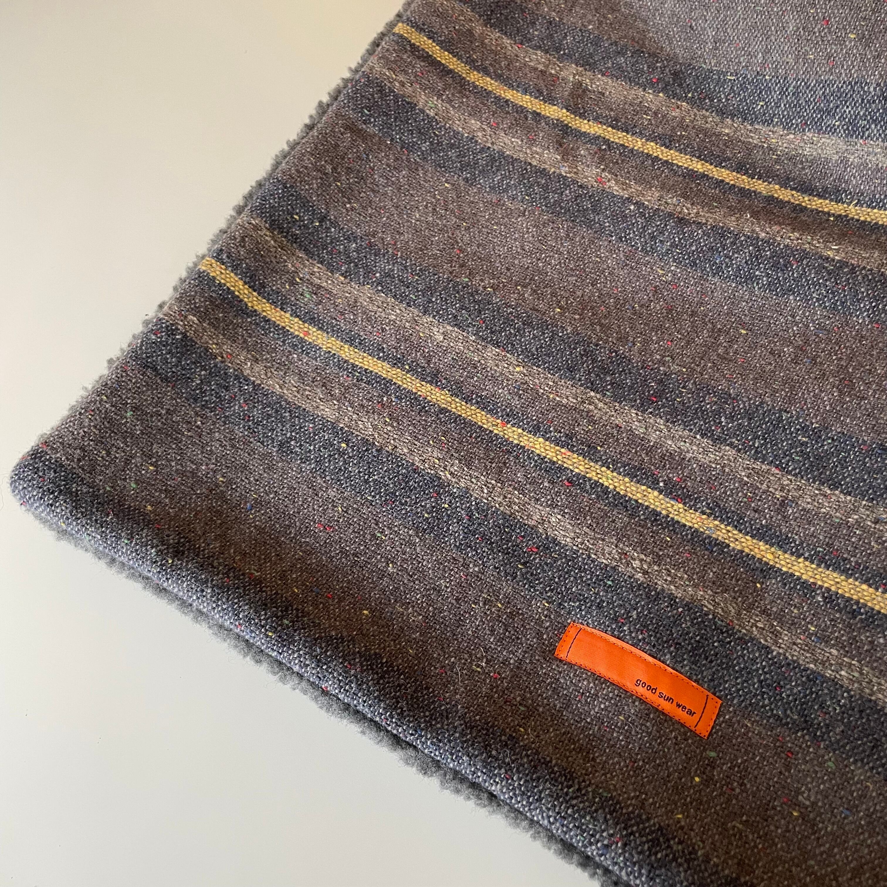 春先まで使える裏ボアで暖かいマットです。ビンテージブランケットライクな生地に裏地はシープボアで寒い日に座ってもひんやりしない暖かいマットです。